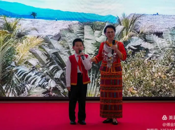 活动现场,广东优秀歌唱家龙律成以一曲《我和我的祖国》深情开唱,奠定了晚会庄重而炽热的情感基调。随后,晚会进入“家国诗心·南北和鸣”诗歌朗诵篇章,五指山市作家协会朗诵团的艺术家们以声传情,抒发深沉的家国情怀。特别环节中,杨佩莲女士现场赠画,将绘画意境与诗歌精神巧妙交融;国家级非遗传承人黄照安先生的黎族竹木器乐演奏,则让观众领略到海南黎族文化的悠远韵味。